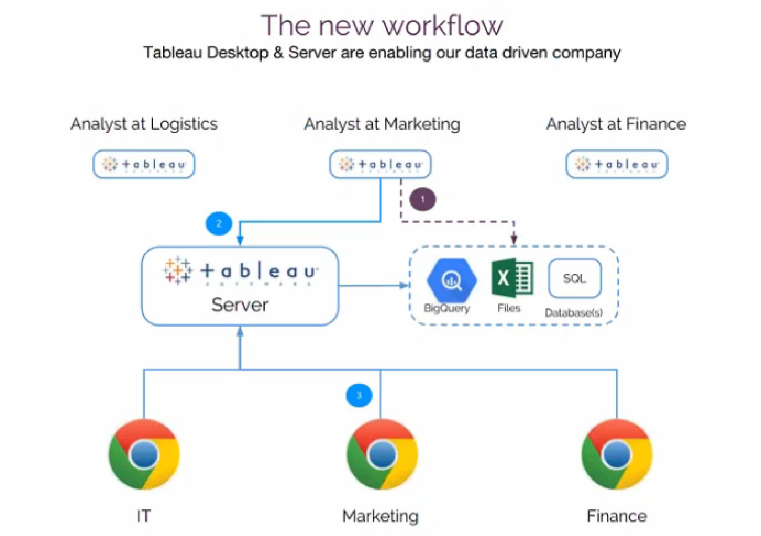 图表显示使用 Tableau 和 Google BigQuery 的新工作流