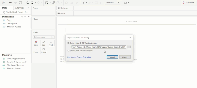 根据需要,文件夹可以包含尽可能多的 CSV 文件,但整个文件夹将始终作为单个实体导入,并且,如果打包了工作簿,则所有自定义地理编码数据都将与打包文件捆绑在一起。