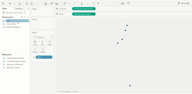 扩展现有角色是添加 Tableau 不能自动识别的城镇的选项。这是一个 CSV 文件,添加了佛罗里达州的一些小镇信息。