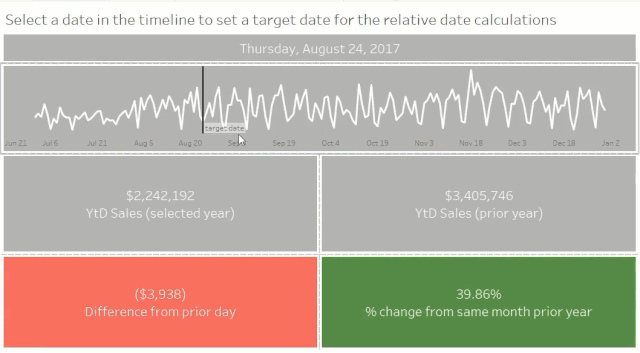 然后,创建一个计算字段,以便从集中捕获日期值。此外,该计算字段也会被其他计算引用,共同实现仪表板中其他值的联动变化。