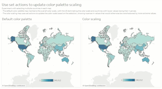 本例中,我们发现:当某个国家的数值高于其他国家时,调色板经常会因极端值而失真,非极端值之间的细微差异可能会消失,甚至被忽略。