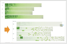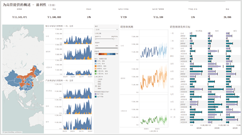 使用 Tableau 树形图与突出显示的功能,了解基于会员、产品、客户和合作伙伴的生命周期,了解在自有业务体系中各个重要环节的发展与演变。长期的经营数据充分体现了业务形态的发展趋势,通过这些功能的运用,使得管理人员能够从关注汇总数、达标情况而转向关注重要细节、关注自定义范畴的细节。