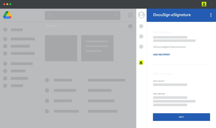 使 DocuSign 电子签名成为您的 Google Workspace 自然组成部分。通过我们的统一应用程序的推出,您可以从一个列表中安装 Gmail、Drive 和 Docs 的集成。使用我们强大的预构建集成,为您提供一种快速简便的方式来电子签名和发送文件。