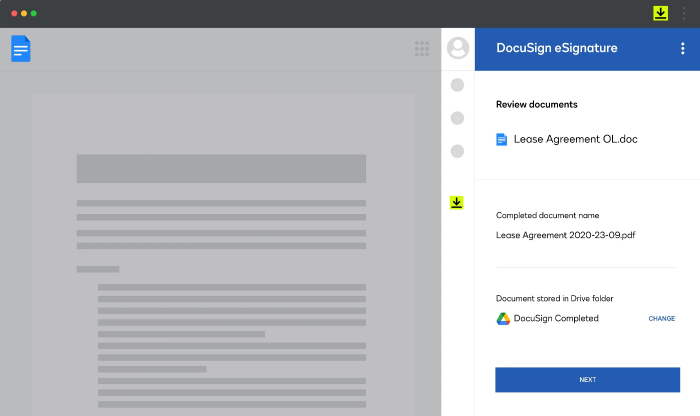 适用于 Chrome 的 DocuSign eSignature 使您能够直接从 Chrome 浏览器签署、发送和管理文档。安装 Chrome Enterprise 推荐的 DocuSign Google 应用程序,以便在浏览您喜爱的网站时即时访问 DocuSign 电子签名。